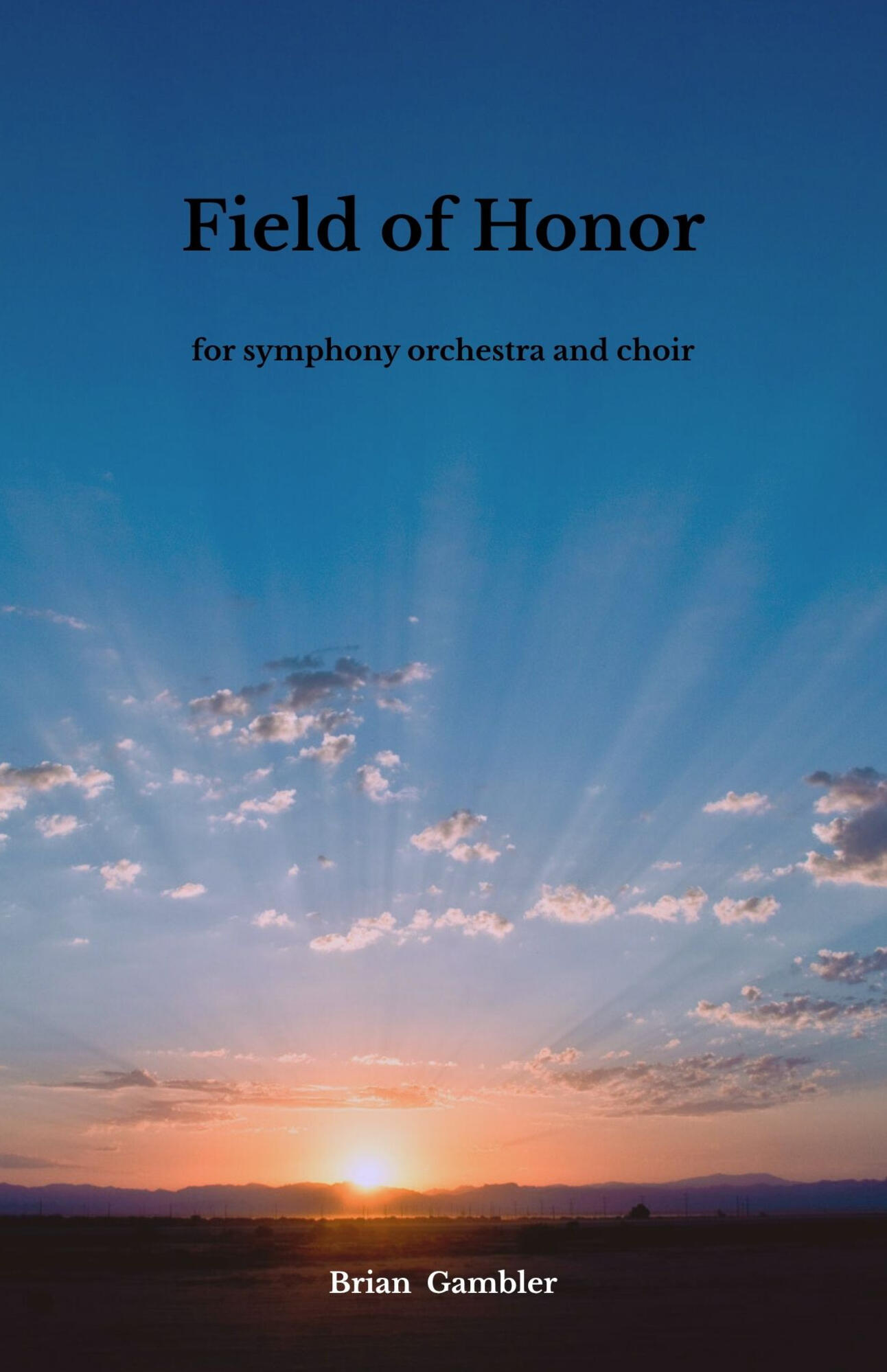 Field of Honor is a large, multi-movement work for symphony orchestra and a full choir. It is separated into three, unnamed movements. This piece was composed between May and November of 2025, the transition between my junior and senior year of college. There are not many works written about the events of 9/11, which is one of the reasons I decided to put together this work about Flight 93. “A common field one day. A field of honor forever” is how the Flight 93 National Memorial is described by the National Park Service.I felt compelled to write Field of Honor after diving into several works about the subject of the 9/11 attacks, including music written after the tragedy. The work that hit me the hardest was John Adams’ On the Transmigration of Souls. It is an extremely moving piece, and I would say that it pushed me over the edge in my decision to begin writing this work. I take the events that I am attempting to portray and discuss through the music very seriously, and above all else, I want to honor the legacy of those who heroically gave their lives to save countless others. The piece is dedicated to the men and women of United Airlines Flight 93."I. The first movement is a memorial. It is built around one melodic motif that is twisted and molded in different iterations throughout the movement.II. The second movement is a musical description of the events of the hijacking. The music is swift and frantic, building to an enormous climax that does not slam into the next downbeat. It simply just stops. What follows is up to the audience to interpret. Percussive sound effects take over, followed by the choir, singing for the first time just before the 10 minute mark. The music then becomes purely atonal - a washing sound that does not go away. After all of this uncomfortableness and foreboding, the darkness slowly retreats as the music transitions into the last movement.III. The third and last movement is a musical reflection on the events that have transpired. There are moments of the darkness returning, representing the sorrow and mourning, but the overwhelming feeling is not of fear, but hope. The sudden consonance represents the unity that the tragedy has given us, striving to rebuild and grow, putting aside differences to remember and honor the countless heroes of that day. The choir returns, first singing a pain-ridden, dissonant setting of Psalm 23, but soon returns with a reflective setting of the Lord’s Prayer. This reflection soon erupts into joy and triumph. The piece ends on a hopeful bVII chord. this provides a level of uncertainty, but staying close enough to the tonic to make the hope more realized."Approx. Length: 22:30 min