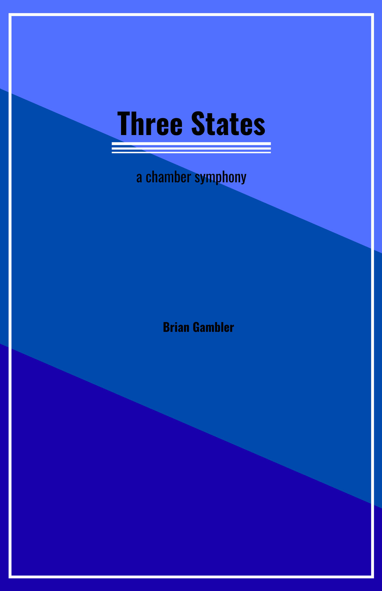 Three States is a piece that took me to a lot of interesting places. I spent approximately six months on this piece, and used my experiences to develop the motivic material heard throughout the work. The time in which I composed this work was a mix of severe stress and happiness that was my junior year of college. As a music education major, junior year is the hardest year due to the sheer amount of coursework and ensemble work required of me. The structure of the piece reflects this back and forth. Each movement utilizes moments of ‘stress’ and moments of happiness. I wanted to write this work, because at the time, I was transferring my compositional style out of the somewhat ‘neo sturm und drang’ that a lot of young composers tend to gravitate to, that neo-romantic, emotional, intense composing that is always influenced by so much of the darkness young people see in the world today. My first larger work for a wind ensemble setting, Ruptured Sky, catapulted me into wanting to make my work more nuanced to reflect myself and my experiences.